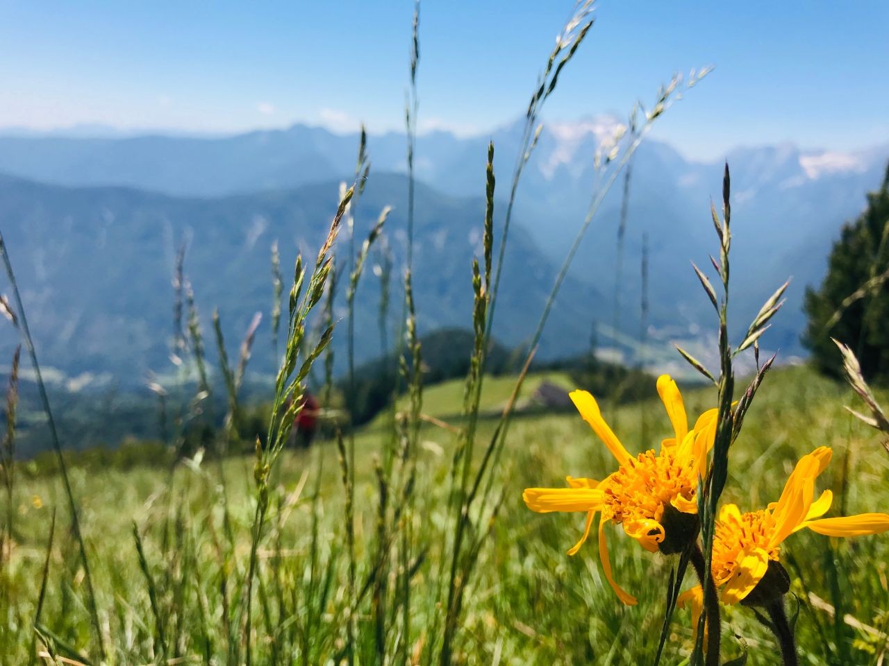 Na vrhu sunce, nigdje hlada, ali se ne osjeća vrućina. Namazao sam ruke, vrat i lice faktorom 30 već dva puta pa mi se čini da sam se dovoljno zaštitio. Svuda oko nas pčele. Slijeću i ostaju po nekoliko sekundi na našim mobitelima dok pokušavamo uhvatiti Triglav preko puta koji u daljini izgleda moćno, gotovo zastrašujuće. Pčele su debeljuškaste iako očito u dobroj formi kad tako zaigrano lete na vrhu visokom 1891 metar. Legao sam u alpsku travu kako bih odmorio za nastavak puta. Ispred mene Austrija, iza leđa Slovenija.