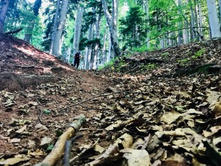 Odlučujem nakon sat vremena hoda skinuti štapove sa ruksaka koje mi je posudio kolega iz grupe. Nagib je opak i više ne oklijevam u tome da ih koristim. Prevario sam se jer sam bio prilično siguran da će mi trebati samo na spustu.