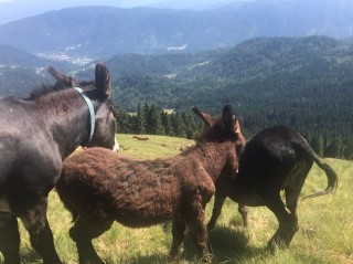 Do sljedećeg vrha hodali smo grebenom, starom granicom između te dvije zemlje. Niti jedno jedino drvo da malo predahnemo od sunca. Skrećemo desno nastavljajući kružno spuštati se prema mjestu gdje smo ostavili kombi. Na početku spusta krava, a par metara kasnije cijela magareča obitelj.