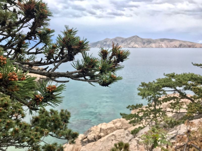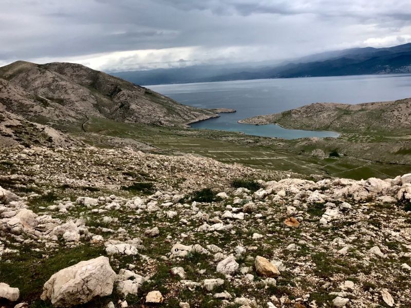 Stižemo do dijela koji više nije prohodan za ljude pa skrećemo i penjemo se prema hrbatu Rebice od kuda sežu pogledi na otok Prvić, Goli otok, a prema istoku se kroz tmurne oblake naziru vrhovi Velebita pokriveni snijegom. Malo dalje, prekrasan je vidikovac prema uvali Vela Luka koju je jedan hrvatski portal proglasio jednom od 8 najaromatičnijih plaža na jadranskoj obali.