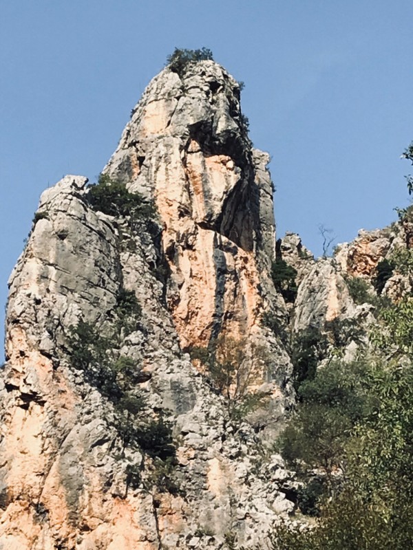 Spust je strm, kliže se. Svi oni s neprikladnom obućom imaju problema i hodaju kao "po jajima" uz povremene padove. Krupa izgleda daleko pa pitam našeg vodiča zar je stvarno danas isplanirao spust i uspon ovdje te potom odlazak na brdo Zir. Odgovara potvrdno s osmijehom te se nakon toga usredotočujem na svoje male korake kojima grabim prema rijeci u kanjonu.