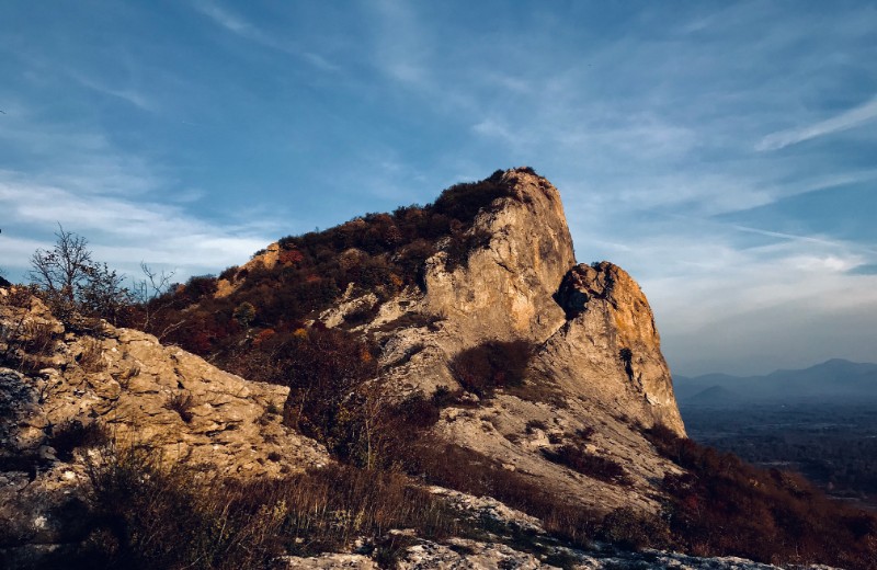 Skoro je 16 sati i vremenski ne stojimo najbolje ako ne želimo da nas uhvati mrak na povratku s brda Zir (850 m) koje se nalazi 40-ak minuta vožnje od Krupe. Vozimo se putovima gdje ni Google nije bio i odjednom, usred Ličkog polja, izdiže se osamljeno brdo sa stjenovitim vrhom.