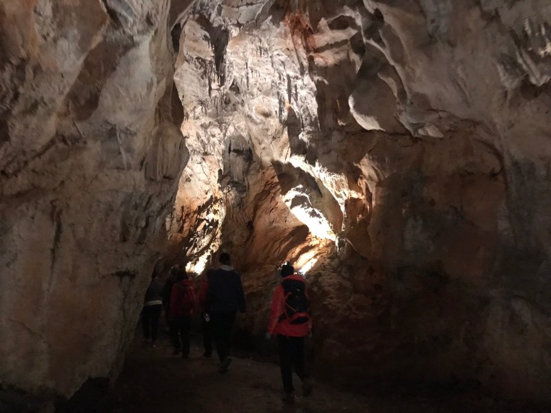 Krećemo. Na ulazu, brdo kamenja koje očigledno ne pripada špilji. Saznajemo da je nakon rata, u drugoj polovici 90-ih godina, špilja bila u privatnoj koncesiji i neki je rođo dovezao benkovački kamen kako bi popločao špiljske puteve. Eto, zvuči ludo, ali je istinito. Ulazimo u Donju špilju, jednu od tri špiljska kompleksa uz Gornju i Srednju špilju. Zajedno su duge oko 7 km, a samo je prvih 700 m Donje i Gornje špilje uređeno za posjete.