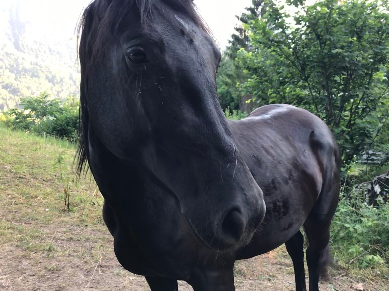 Nakon osvježenja, prilazim konjima u blizini koji izgledaju pomalo divlje iako su ograđeni i u nečijem vlasništvu. Ispred mene, na udaljenosti od 1 metar, crni snažni konj s ožiljcima po tijelu, plahog pogleda. Nemam iskustva s konjima pa polako pružam ruku i čekam. Primiče svoju glavu mom dlanu i dopušta mi kratki kontakt. Pogledi nam se susreću dok snažno pomiče glavu u stranu. Kakav prekrasan osjećaj, konj je životinja koja je oduvijek budila u meni nešto posebno.