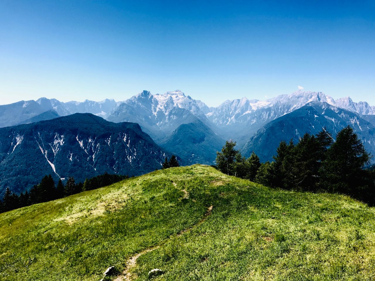Na vrhu sunce, nigdje hlada, ali se ne osjeća vrućina. Namazao sam ruke, vrat i lice faktorom 30 već dva puta pa mi se čini da sam se dovoljno zaštitio. Svuda oko nas pčele. Slijeću i ostaju po nekoliko sekundi na našim mobitelima dok pokušavamo uhvatiti Triglav preko puta koji u daljini izgleda moćno, gotovo zastrašujuće. Pčele su debeljuškaste iako očito u dobroj formi kad tako zaigrano lete na vrhu visokom 1891 metar. Legao sam u alpsku travu kako bih odmorio za nastavak puta. Ispred mene Austrija, iza leđa Slovenija.