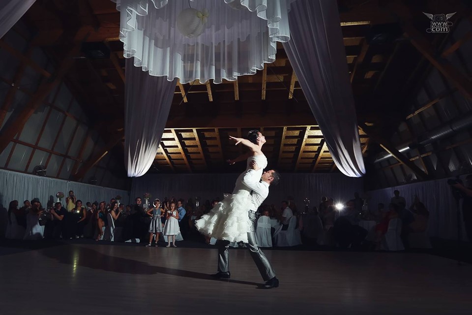 Na slici je jedan od najboljih trenutaka te večeri. Simbolično, u refrenu pjesme You Raise Me Up, ona u skoku prema gore, ja je držim.