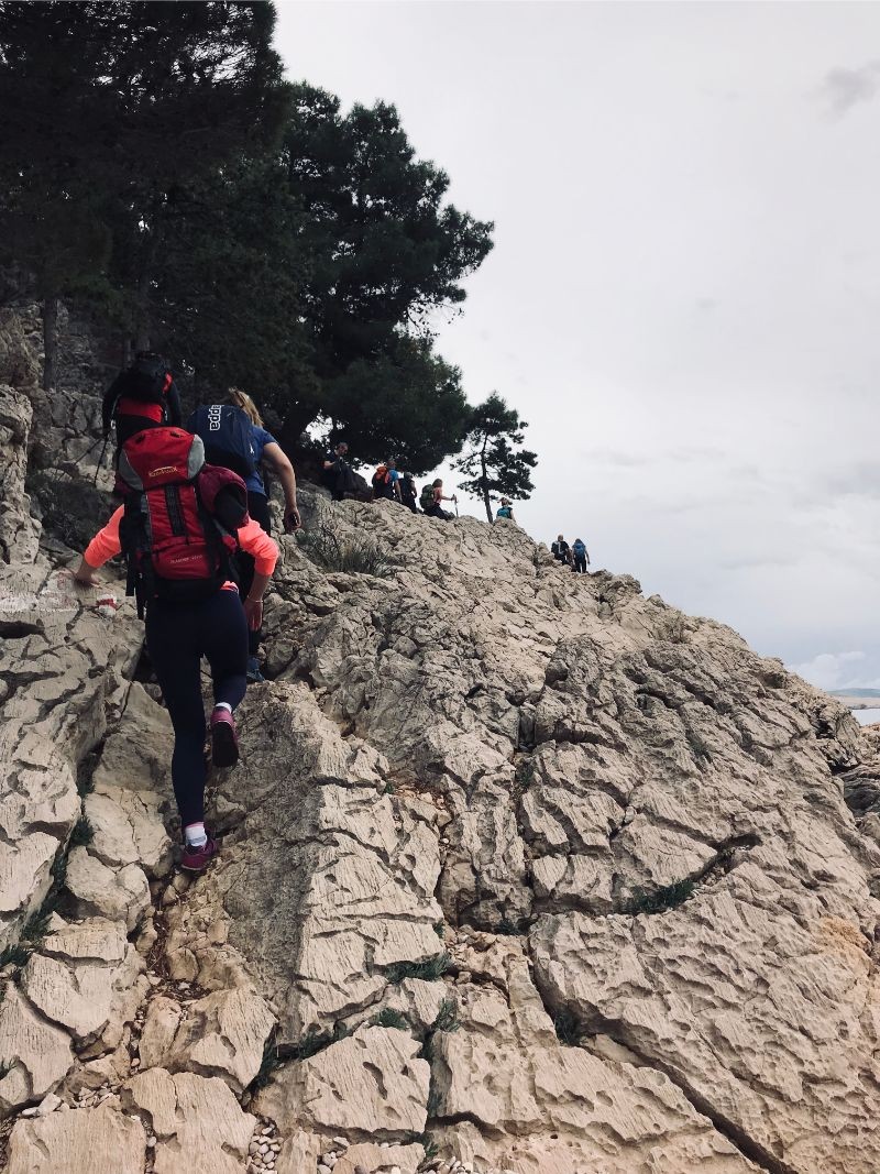 Jedni drugima smo sve više pomagali prilikom prelaska preko kamenih prepreka visokih na dijelovima i do 3 metra. Tko god nije mogao sam, uspio je uz pomoć grupe.
