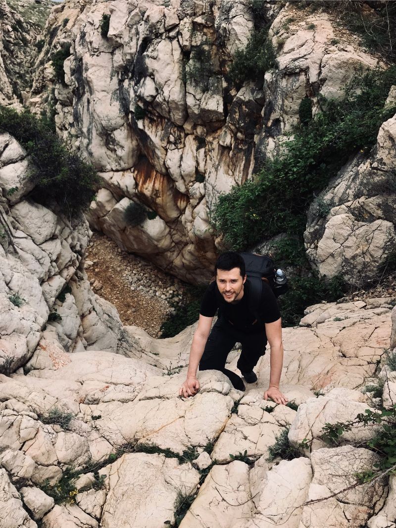 Stižemo do prve prepreke u kanjonu gdje je trebalo upotrijebiti ruke za prolazak dalje. Dotičem mokri obli kamen i prstima tražim mjesto u stijeni kako bih se uhvatio i popeo.